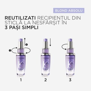 Indiferent de ce nuanta de blond aveti sau va doriti: you dare, we care. Gama Blond Absolu ofera reparare instantanee fibrei, neutralizeaza nuantele nedorite de galben pentru a putea obtine nuanta ideala de blond pe care v-o doriti. Acest ritual mentine tonurile reci cu ajutorul neutralizantilor cu ultra-violete in timp ce hidrateaza parul si ii ofera luminozitate din interior.