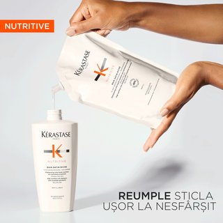 Nutritive Bain Satin Riche de la Kérastase este un sampon ultra-hranitor, special conceput pentru parul foarte uscat. Formula sa contine polimeri anti-deshidratare ce ofera o hranire intensa si fortifica firul de par, facandu-l unul dintre cele mai eficiente sampoane pentru par foarte uscat si scalp sensibil. In plus, este imbogatit cu nutrienti esentiali care hranesc si intaresc parul uscat, fara a-l ingreuna.